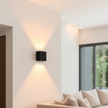 D'Lite Elingen Wandlamp Aluminium Zwart Up & Down 2.9W 170lm - 830 Warm Wit | Werkt Op Batterijen - Lichtsensor
