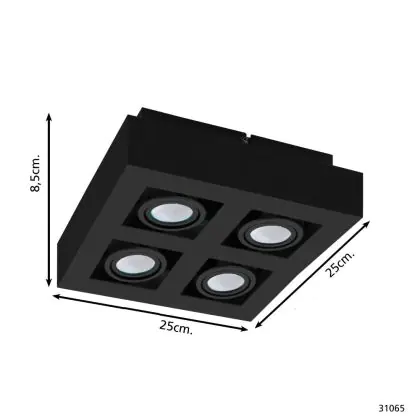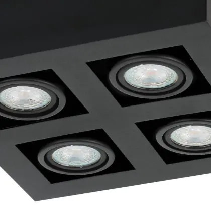Eglo Plafond Spot Mendoza Staal Zwart 18.8W 1380lm - 830 Warm Wit | Dimbaar - Geschikt voor GU10