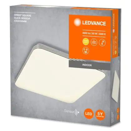 Ledvance LED Bulkhead Orbis Vierkant 530 Wit 60W 4450lm - 830 Warm Wit | 530x530mm - IP20 - Click - Bewegings- en lichtsensor