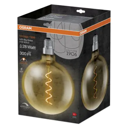 Osram Vintage 1906 LED E27 Globe Filament Goud 200mm 5W 300lm - 820 Zeer Warm Wit | Dimbaar - Vervangt 40W
