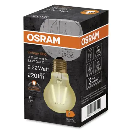Osram Vintage 1906 LED E27 Peer Filament Goud 2.5W 220lm - 824 Zeer Warm Wit | Vervangt 25W