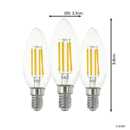 Voordeelpak 3x Eglo LED Kaars E14 Filament Helder 21W 806lm - 827 Zeer Warm Wit | Vervangt 60W
